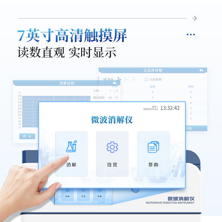 简要描述: 微波消解仪是一种用于样品前处理的设备,通过微波加热技术对样品进行快速、有效的消解。该仪器广泛应用于食品、环境保护、疾病控制、质量监督、商品检验、科研院所等领域,特别适用于各种样品的酸消解和溶剂萃取。